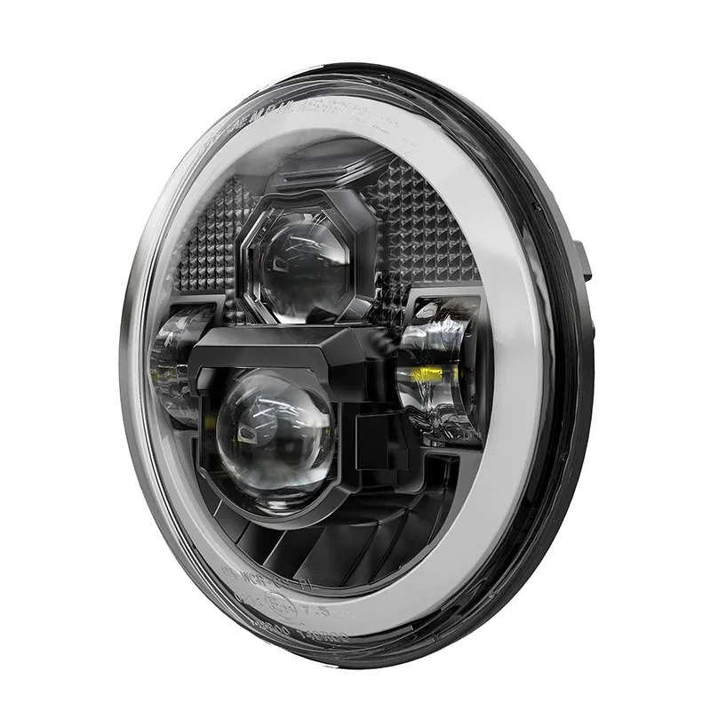 Uasghrádú a dhéanamh ar d'fheithicil Jeep Wrangler JK lenár gceannsoilse Halo chun cinn faoi stiúir. Tagann an tionól ceannlampa Halo seo feistithe le bhíoma ard, bhíoma íseal, DRL bán agus comharthaí cas ómra, ag soláthar solúbthachta eisceachtúil d'aon staid tiomána. Gile ard, infheictheacht fheabhsaithe, agus sábháilteacht bhreise ar an mbóthar agus lasmuigh de. Tógtha chun na heilimintí a sheasamh, tá na ceannsoilse halo seo do Jeep Wrangler JK uiscedhíonach agus tá lionsa PC buan acu le haghaidh feidhmíochta fadtéarmach. Ráthaíonn an tithíocht alúmanaim bás-teilgthe an diomailt teasa éifeachtach chun an fheidhmíocht is fearr a chinntiú, déanann an dearadh breiseán agus súgartha an tsuiteáil éasca laistigh de 20 nóiméad. Tá sé oiriúnach don chuid is mó de na feithiclí a úsáideann ceannsoilse tosaigh 7 n-orlach mar Jeep Wrangler JK, Hummer H2/H1, Land Roverder Defender 90/110 agus níos mó.